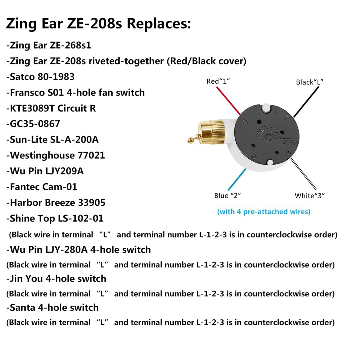 Duendhd 2pcs Fan Light Switch Ze 208s 3 Speed 4 Wires Ceiling Fan Switch Replacement Part Speed Control Pull Chain Switch Brass Amazon De Home Kitchen